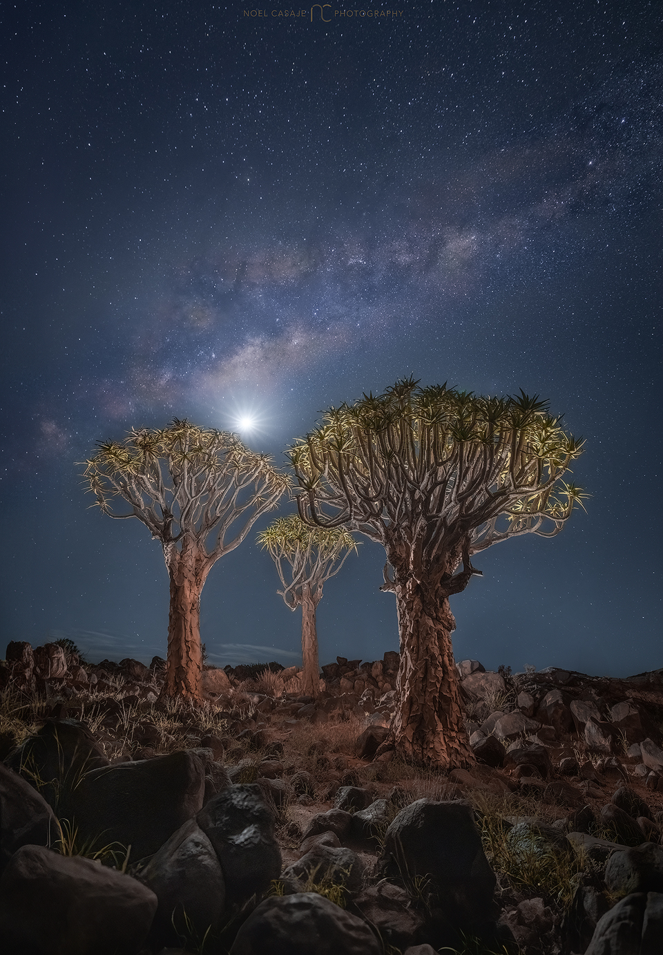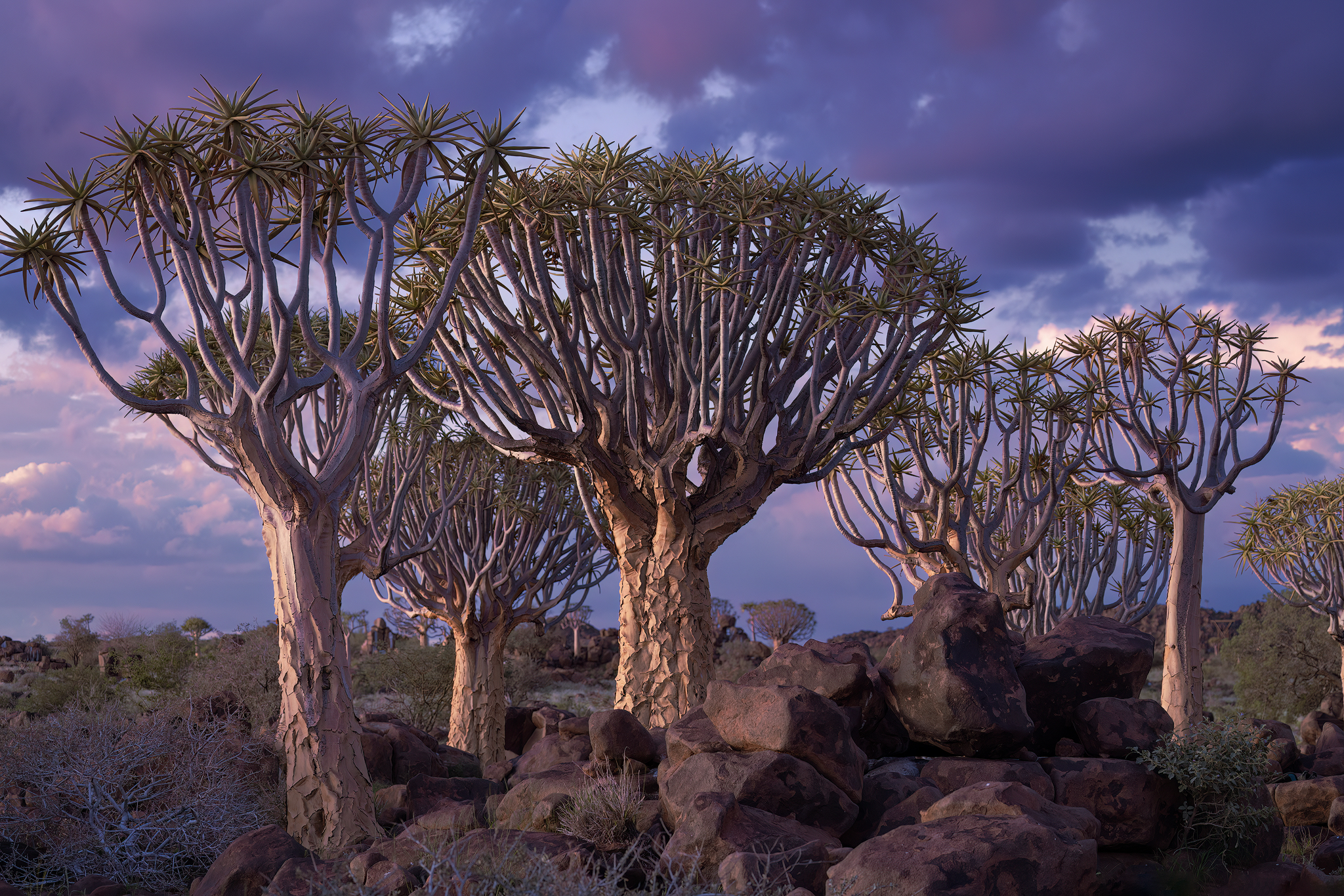 As the sun sets and the sky darkens, the forest transforms. We’ll set up for an unforgettable night photography session—capturing the iconic silhouettes of the quivertrees beneath the stars.