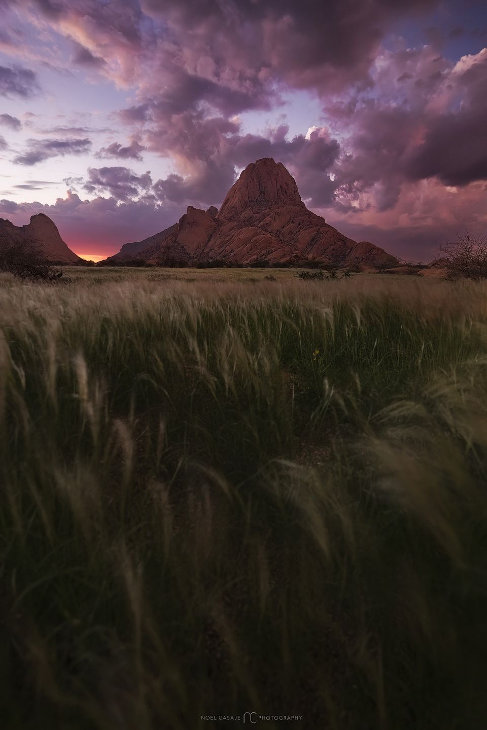 Often referred to as the “Matterhorn of Namibia,” these towering rock formations offer a playground of bold shapes, warm tones, and otherworldly textures—perfectly lit by the golden glow of sunset.