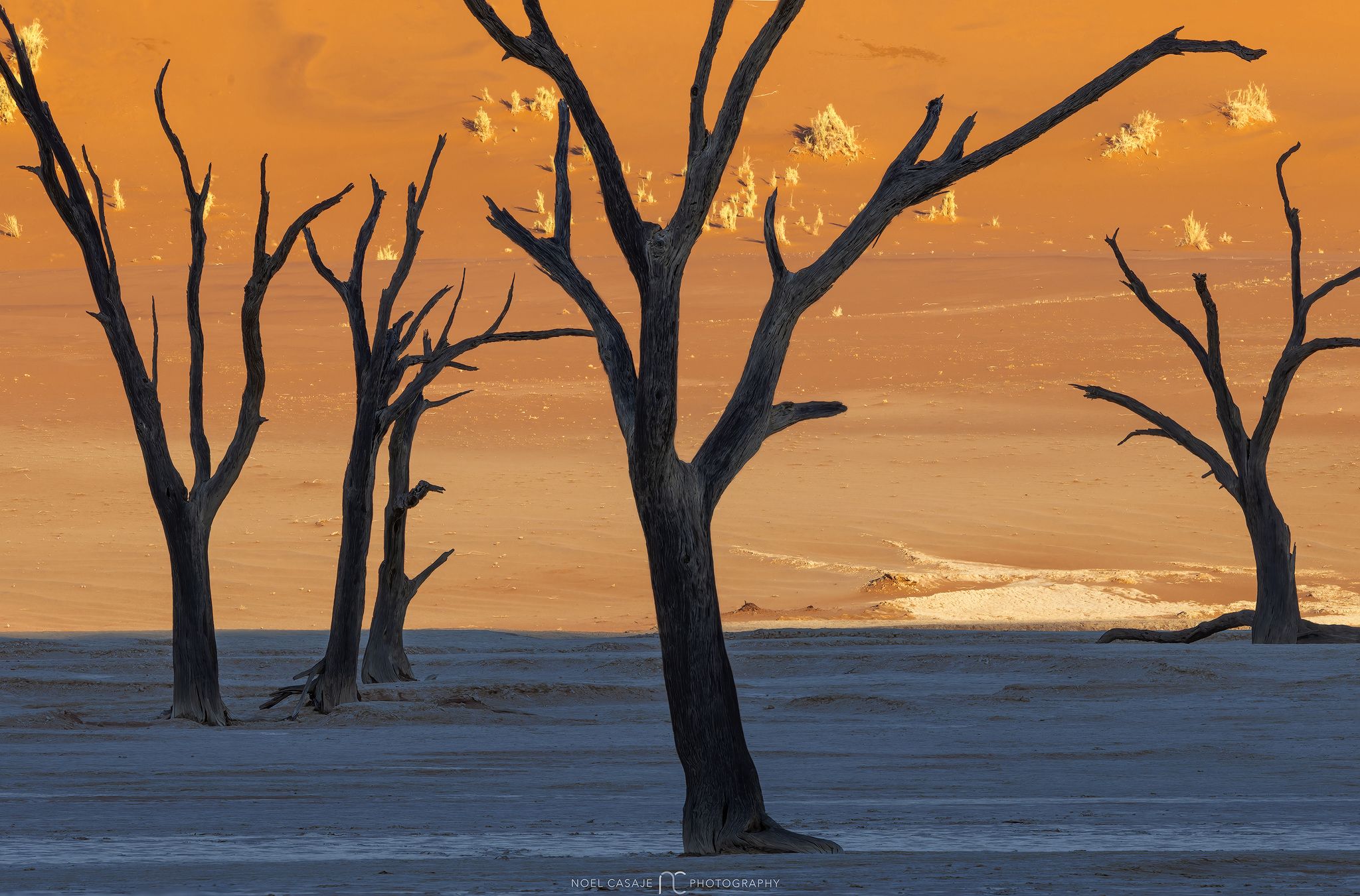 This early departure is critical—we’ll be racing against the rising sun across several kilometers, aiming to reach Deadvlei at first light. In those brief, magical moments, the skeletal camelthorn trees cast long shadows across the bone-white clay, and the surrounding dunes glow with intense reds and oranges.