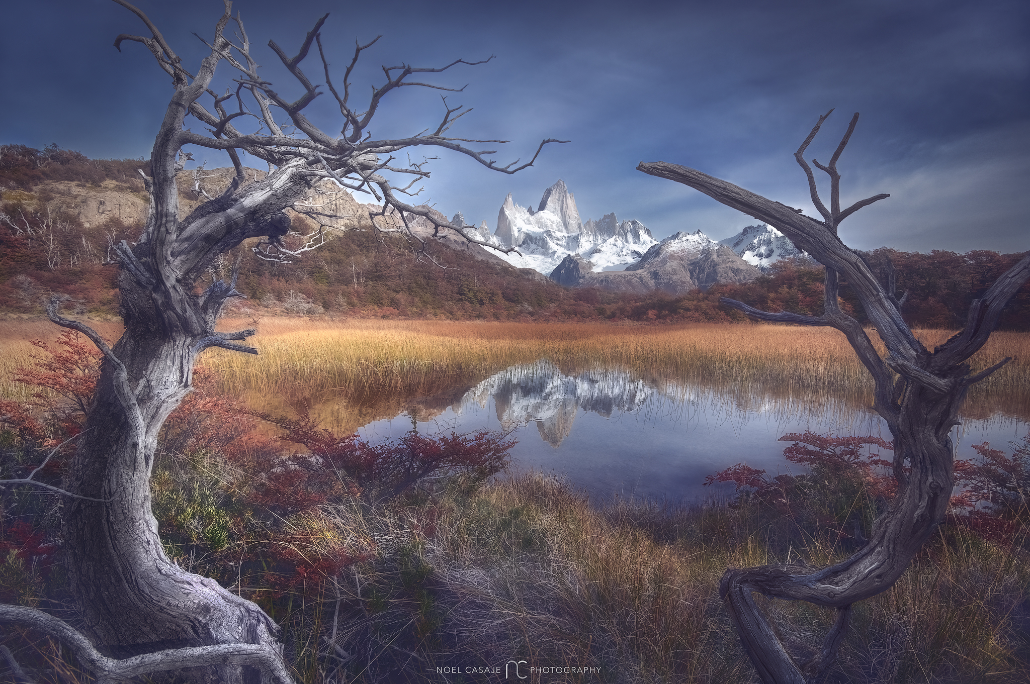 Capture Fitz Roy's sunrise from the river viewpoint, then embark on a picturesque drive to Lago Desierto, pausing along the way to capture the stunning scenery through your lens. As we journey back to El Chaltén, we'll make a stop to photograph the enchanting Salto Del Anillo waterfall, adorned in the vibrant hues of autumn.